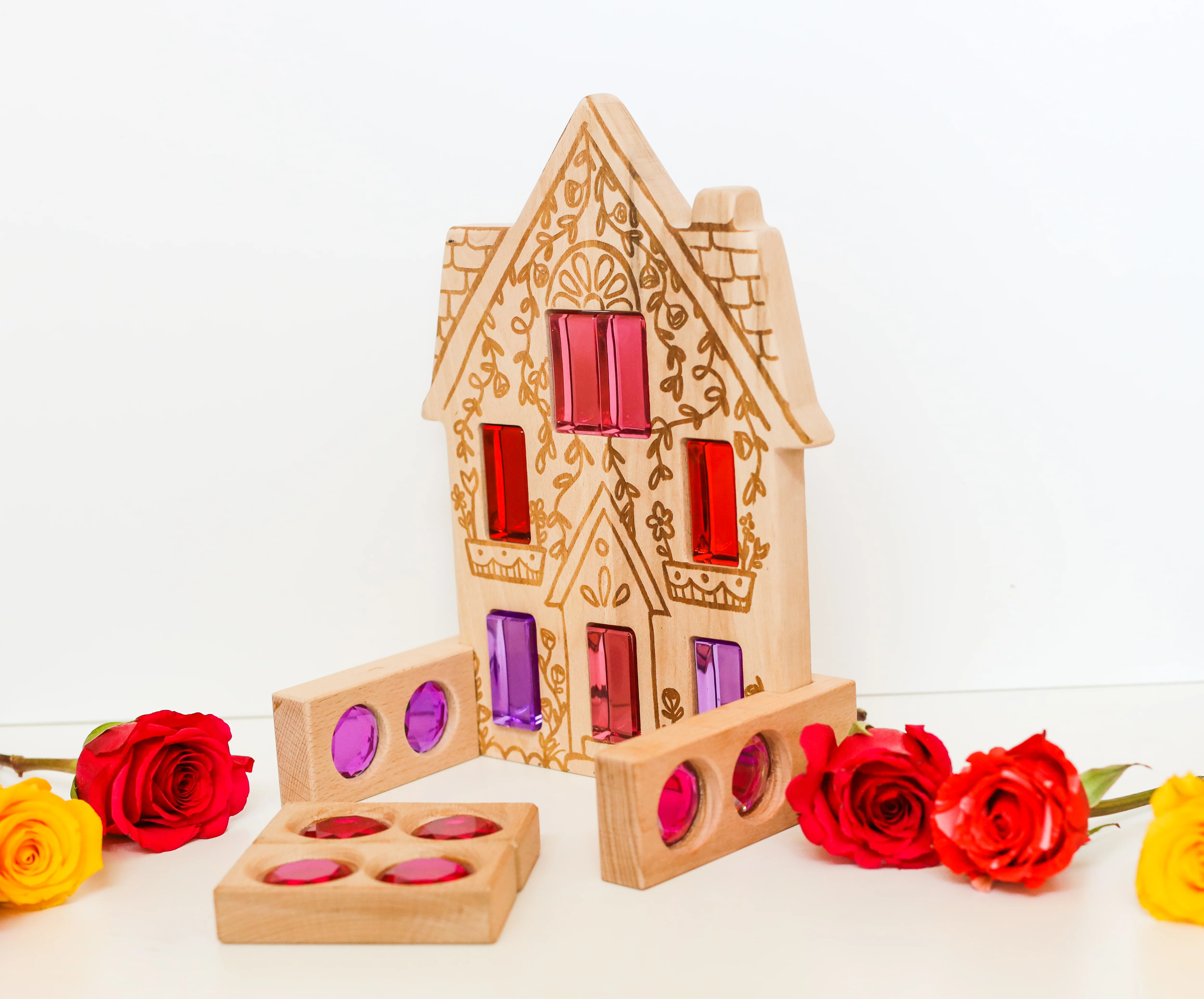 Nestled just down the road from the Tulip Cottage lives our European inspired Rose Cottage covered in beautiful climbing roses. She's the perfect addition to the Hello Sugarhouse family! You can purchase the Rose Cottage alone, or with Stand blocks in a bundle and Rainbow Blocks. The Stand blocks offered with the Rose Cottage are an exclusive and limited edition Dark Pink Stand Set.
